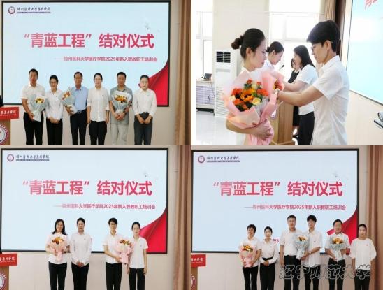 仪式上,“青蓝工程”结对环节温情上演。各系(部)负责人为新教职工代表佩戴校徽,这枚小小的徽章既是学院荣誉的象征,更承载着“接力育人使命”的期许。新教职工代表向带教导师献上鲜花,鞠躬致谢,定格下“以老带新、共促成长”的温馨画面。通过师徒结对机制,助力青年教师快速融入专业领域,为学院储备骨干力量。
