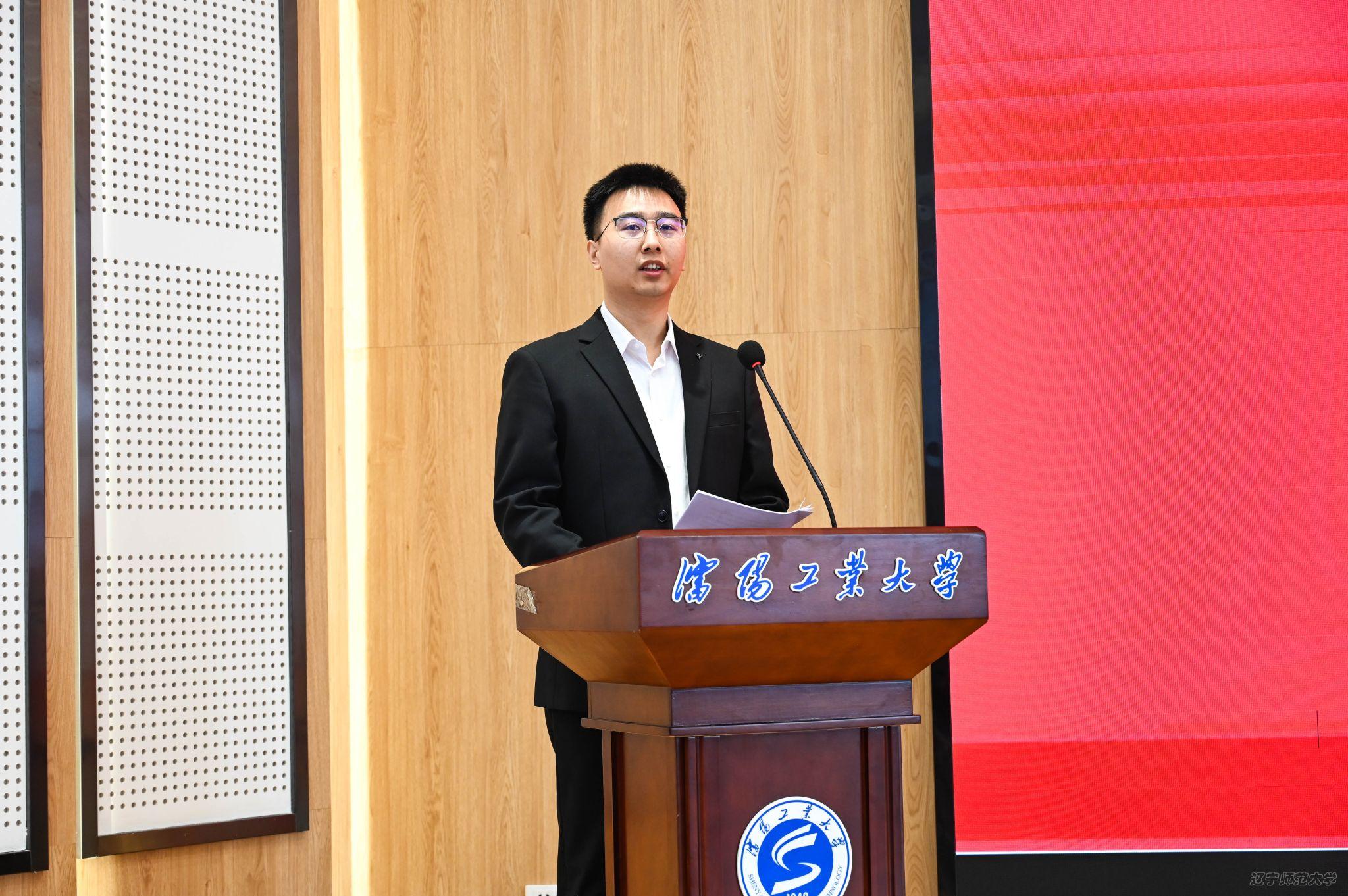 新入职教职工代表、机械工程学院栾贻函发言。他从初识工大的兴奋,到了解唐任远院士和洪家光校友事迹的感召,表示新教师们将以杰出前辈为榜样,将个人奋斗融入国家需要,在教学科研一线从“实”处发力、向“深”处扎根,为辽宁全面振兴贡献工大智慧与力量。