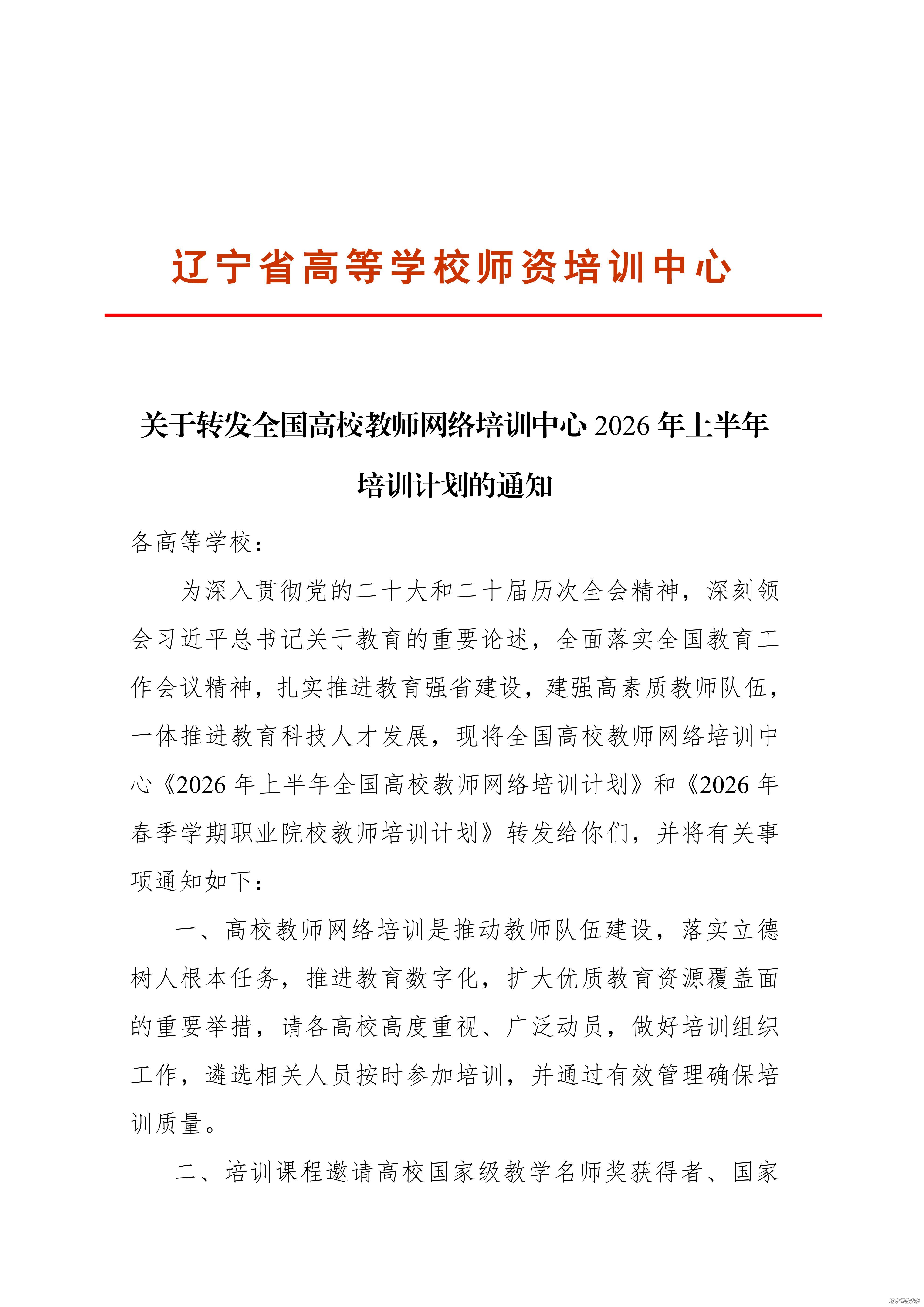 关于转发全国高校教师网络培训中心2026年上半年培训计划的通知